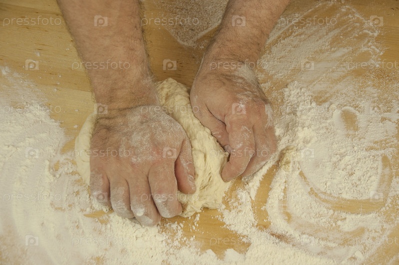 Мужские руки месят тесто. Мужской пекарь