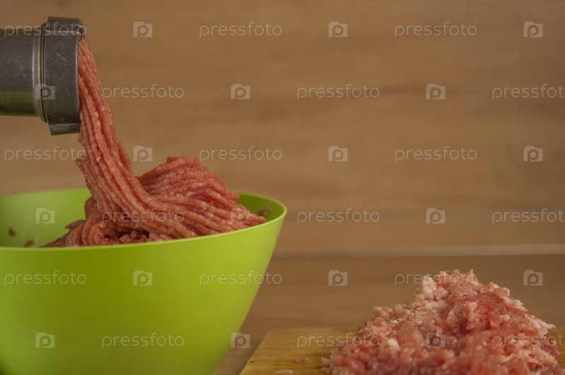 Мясорубка с фаршем на деревянном столе