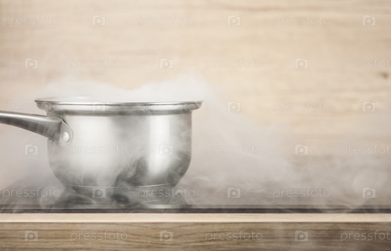 Зарисовка кухни. Ковш на горячей плите