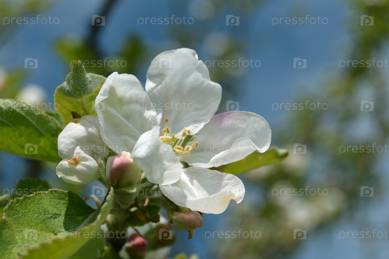 Цветущая яблоня на фоне неба