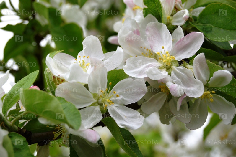 Цветущая яблоня на фоне неба