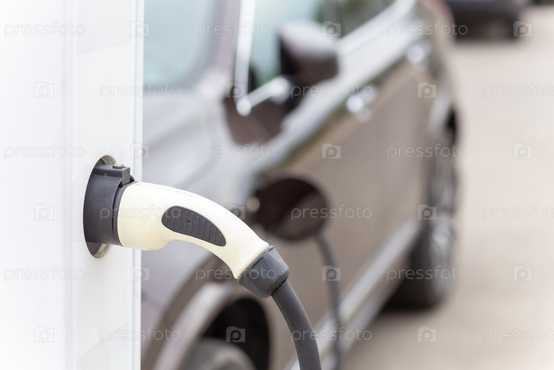 Источник питания подключается к электромобилю для зарядки аккумулятора