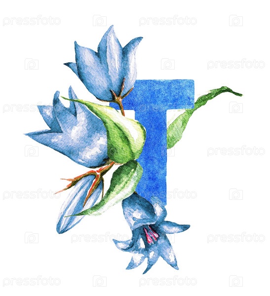 Буква Т и колокольчик. Акварель