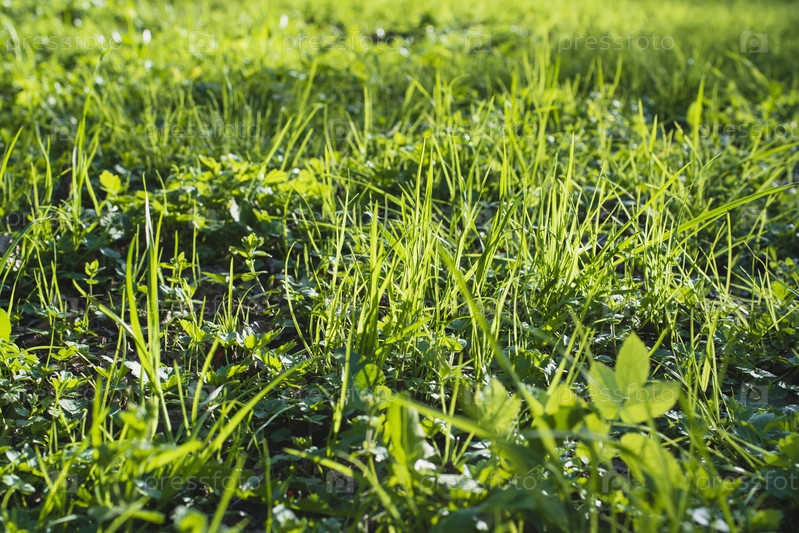 Зеленая трава крупным планом. Лужайка. Фон