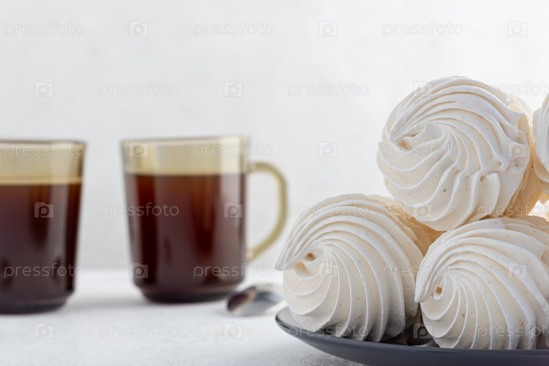 Вкусный зефир на тарелке, стоящей на светлом мраморном фоне. домашние десерты, кондитерская, кондитер, праздник, день рождения, день святого валентина, кондитерские изделия, концепция чаепития