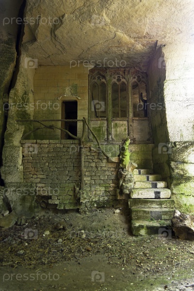 Вход в подземный замок, построенный в каменоломнях под замком Гранд-Мелло, Франция.Этот подземный замок не был закончен и сейчас частично разрушен