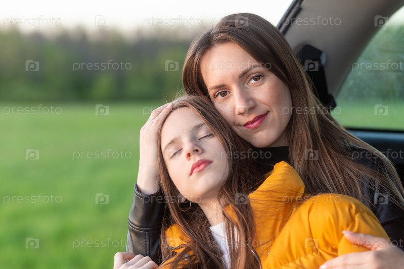 Мать и дочь в походе на холме