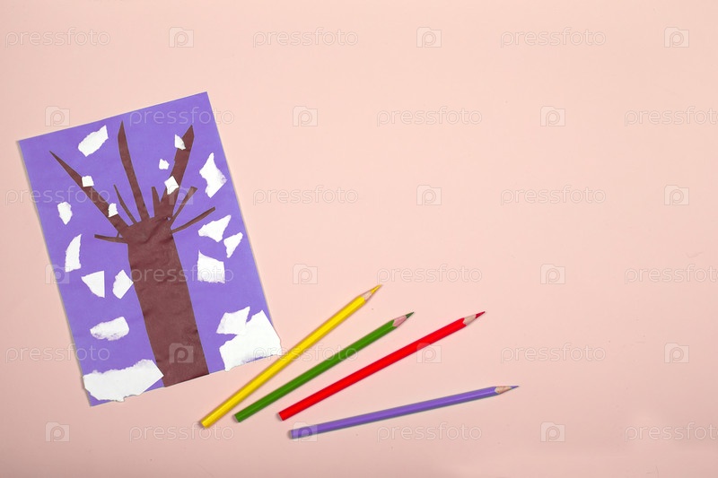 Поделки из бумаги для детей. Применение детского творчества. Детский сад и школа ремесел. На розовом фоне дерево из цветной бумаги