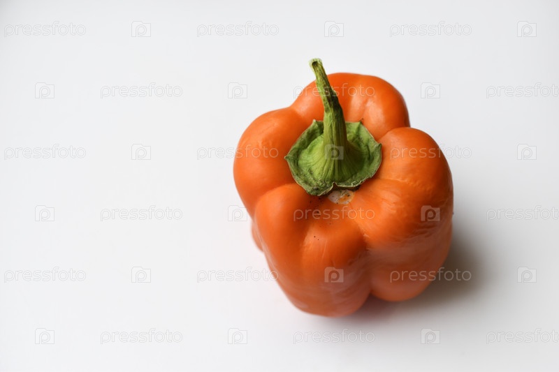 Оранжевые большие плоды перца на белом фоне. Красивый спелый перец крупным планом