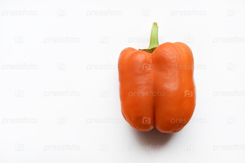Оранжевые большие плоды перца на белом фоне. Красивый спелый перец крупным планом