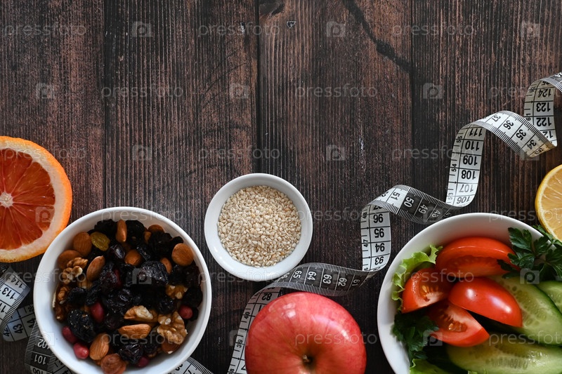 Вид сверху на свежие фрукты и овощи. здравоохранение. Сбалансированная диета