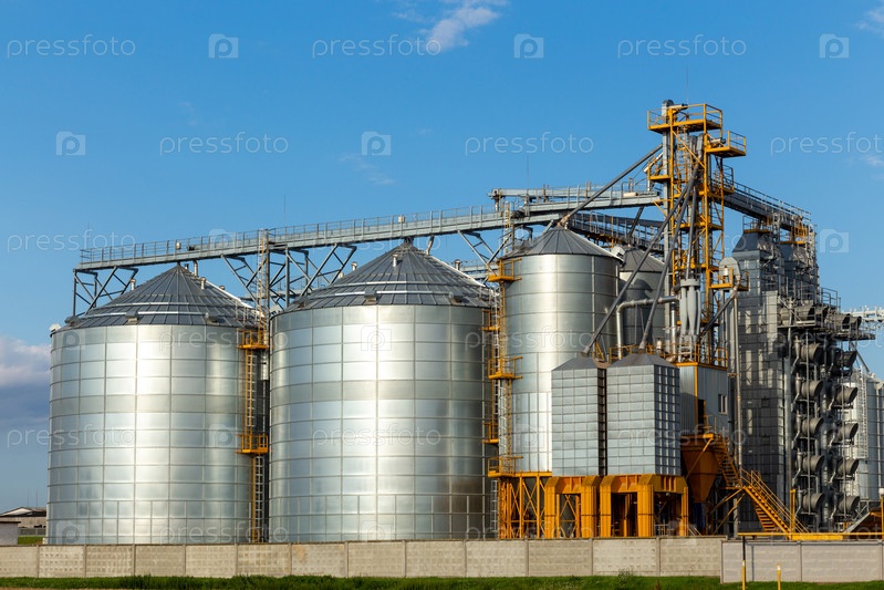 Современный элеватор зернохранилища и линия очистки семян