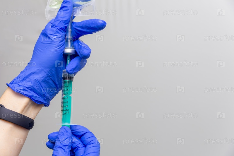 Женщина-врач или медсестра в резиновых перчатках готовит инъекцию