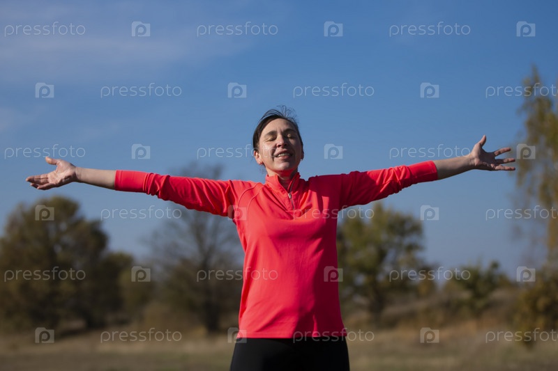 Веселая спортивная пожилая женщина. Позитивная пожилая женщина делает упражнения. Портрет спортивной пожилой женщины в парке