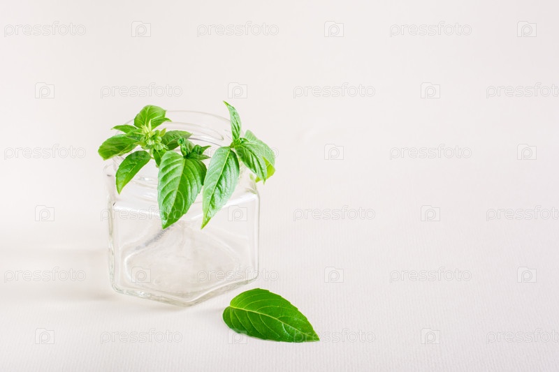 Свежие листья в прозрачной банке. Экологически чистая концепция, переработка, защита окружающей среды