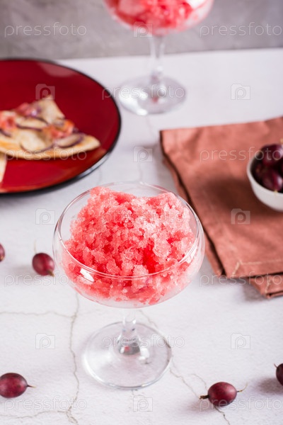Летний напиток замороженное вино в стаканах на столе. Освежающий алкогольный коктейль