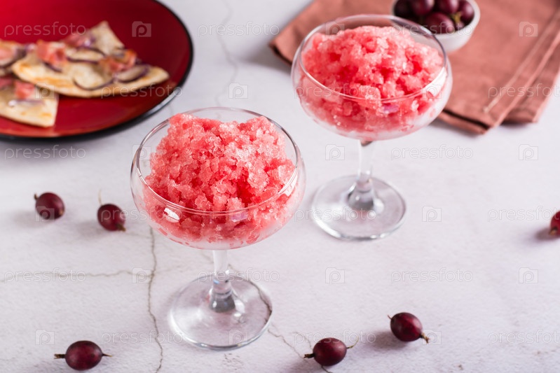 Летний напиток замороженное вино в стаканах на столе. Освежающий алкогольный коктейль