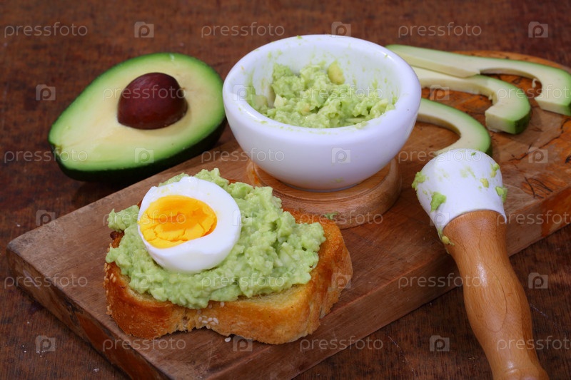 Бутерброд с авокадо и яйцом на деревянном столе