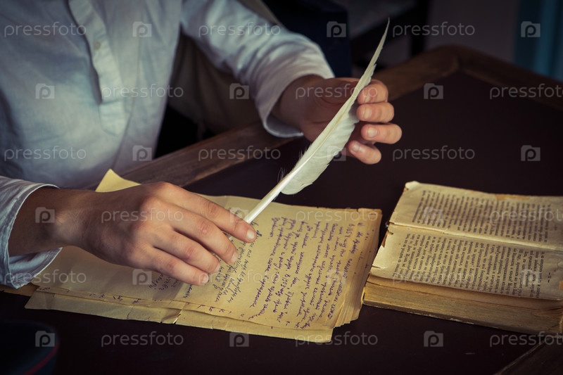 Рука поэта держит перо