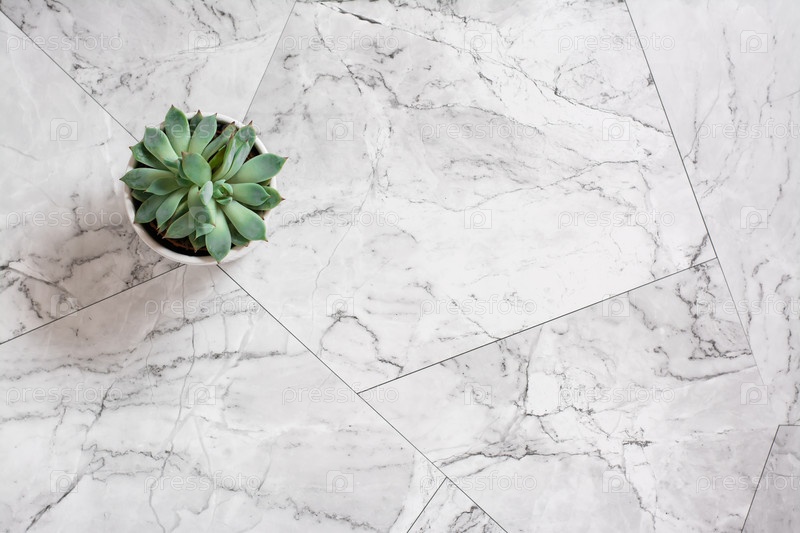 Суккулент в горшке на мраморной плитке. Скандинавский дизайн дома