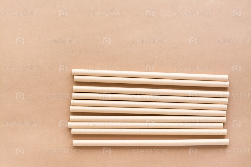 Картонные соломинки для питья на бежевом фоне. Экологически чистая и безотходная концепция. Вид сверху