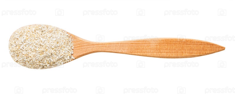 Вид сверху на деревянную ложку с изолированными ржаными отрубями