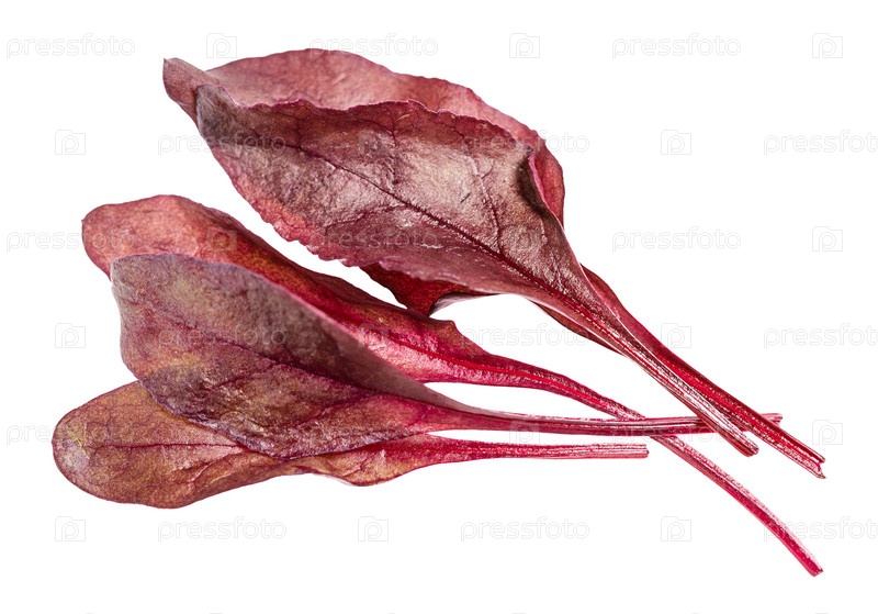 Несколько свежих листьев красного мангольда изолированы
