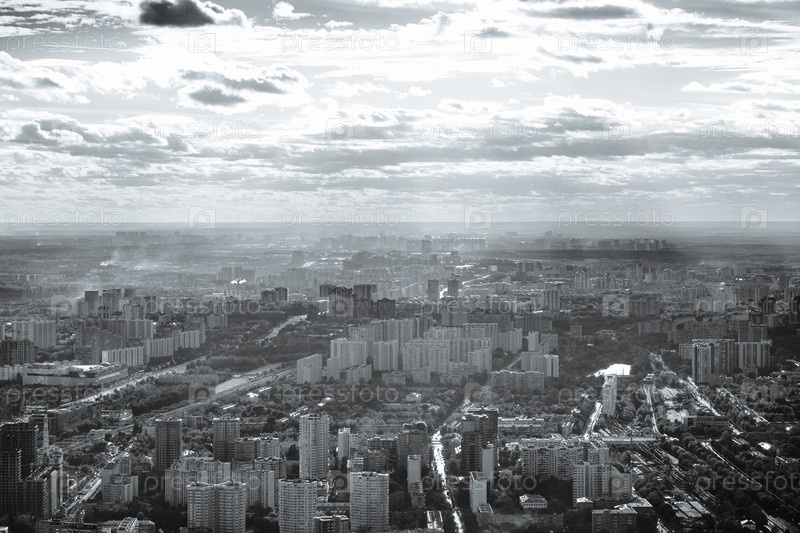 Вид на запад Москвы в черно-белом