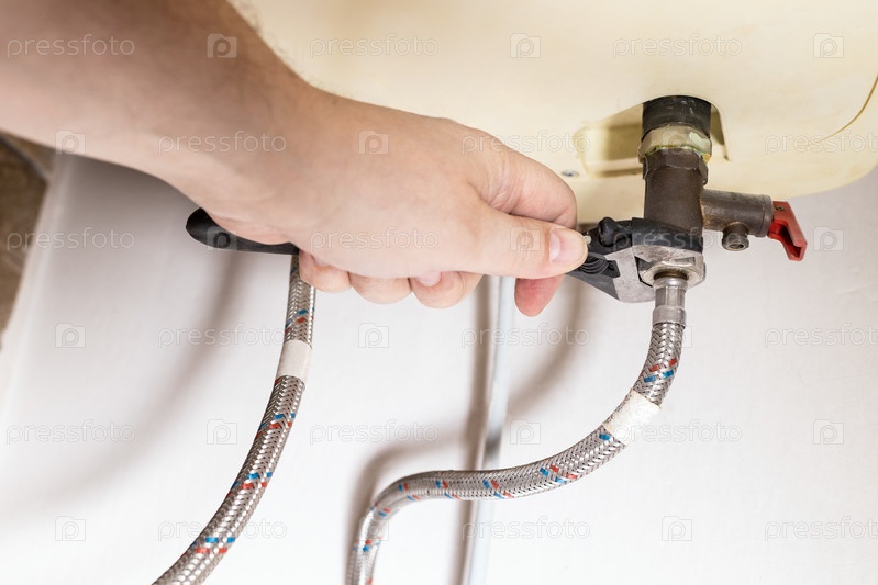 Вручную устанавливает клапан с помощью разводного ключа на котел