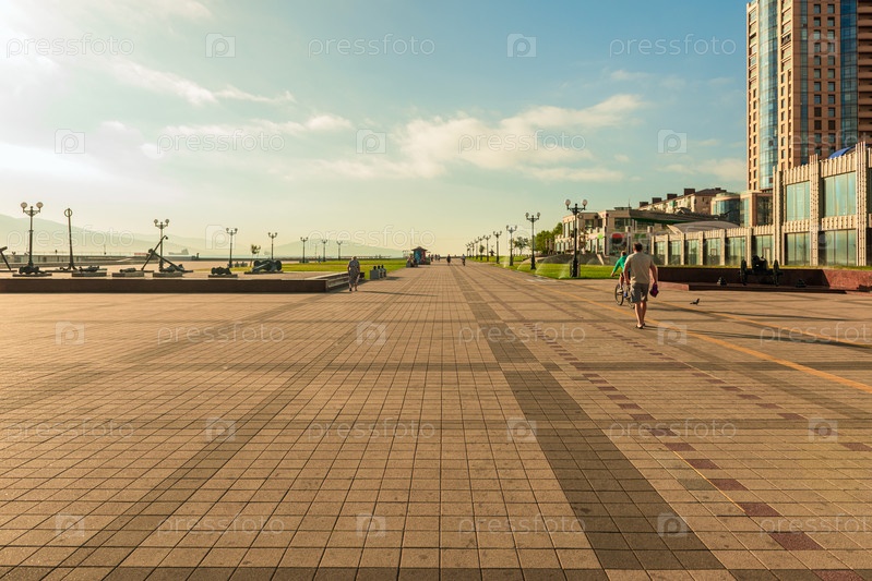 Город Новороссийск, набережная Новороссийской бухты ранним утром