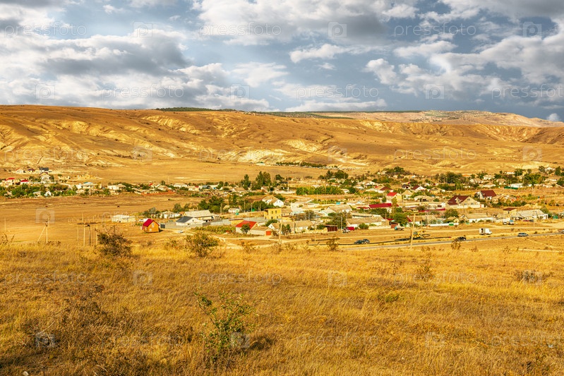 Пейзаж гор Крымского полуострова в конце летнего периода у села Южное в Крыму