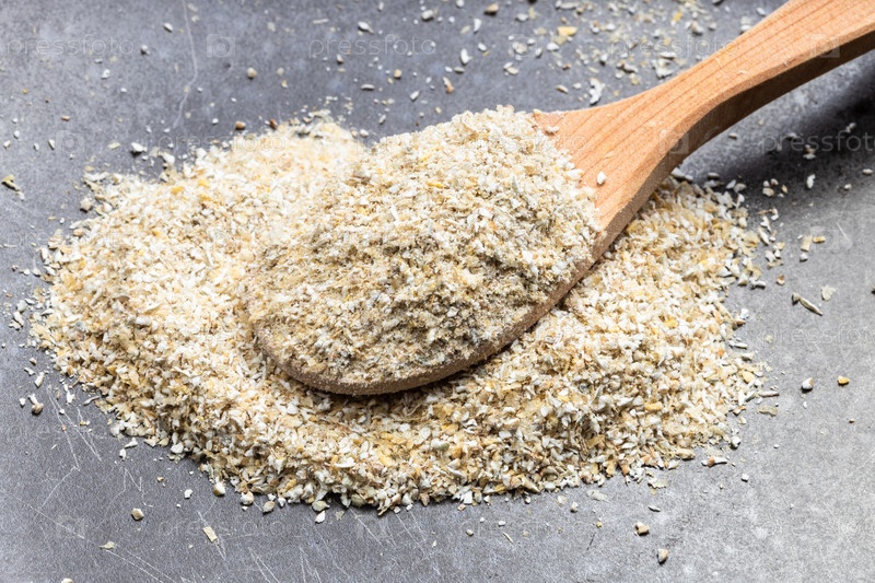 Деревянная ложка с ржаными отрубями крупным планом на тарелке