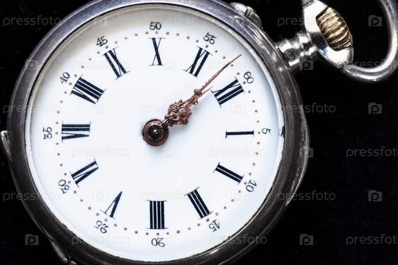 Старинные карманные часы на черном бархате крупным планом
