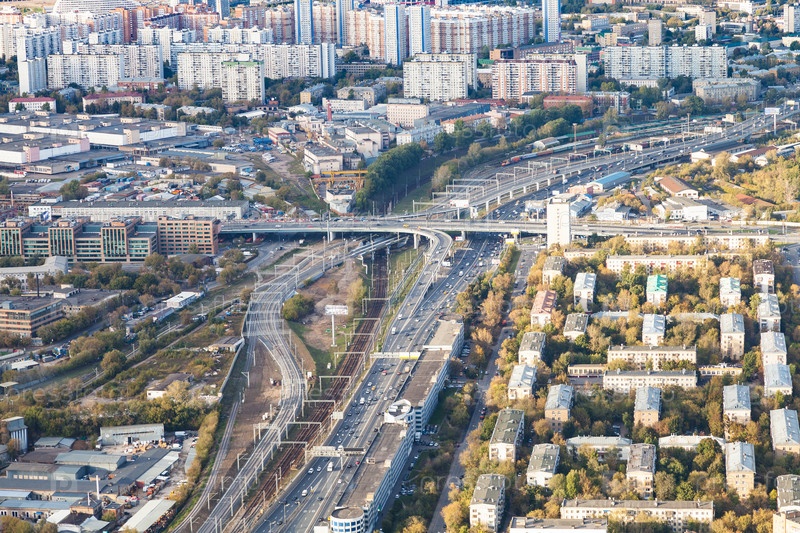 Над видом на дороги и железные дороги в городе Москва