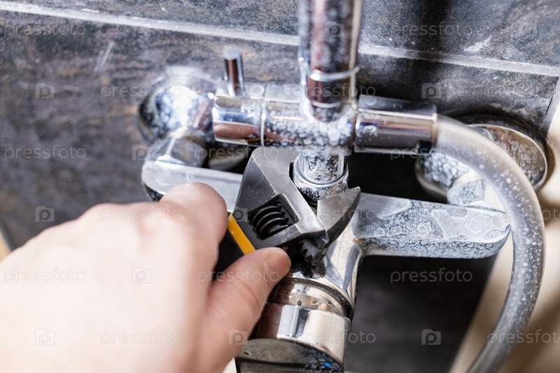 Сантехник чинит гайку смесителя для душа крупным планом