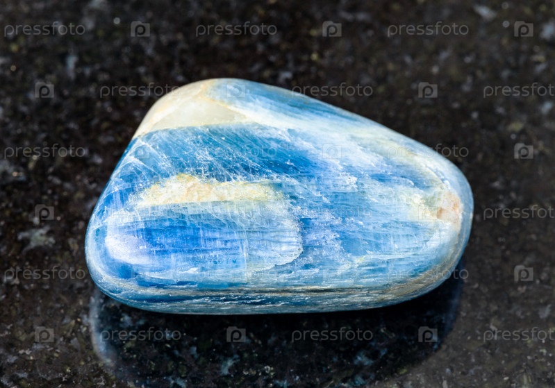 Полированный кианитовый камень на черном