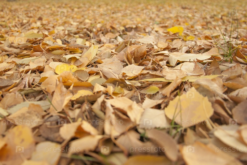 Желтые, оранжевые и красные октябрьские осенние листья на земле в красивом осеннем парке. Опавшие золотые осенние листья закрывают вид на землю в солнечном утреннем светлом дворе. Ноябрь природа макро лист фон