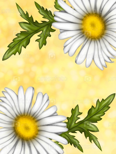 Иллюстрация цветков ромашки. Фон для оформления открытки. Большой букет ромашек. Белые цветы на светлом фоне