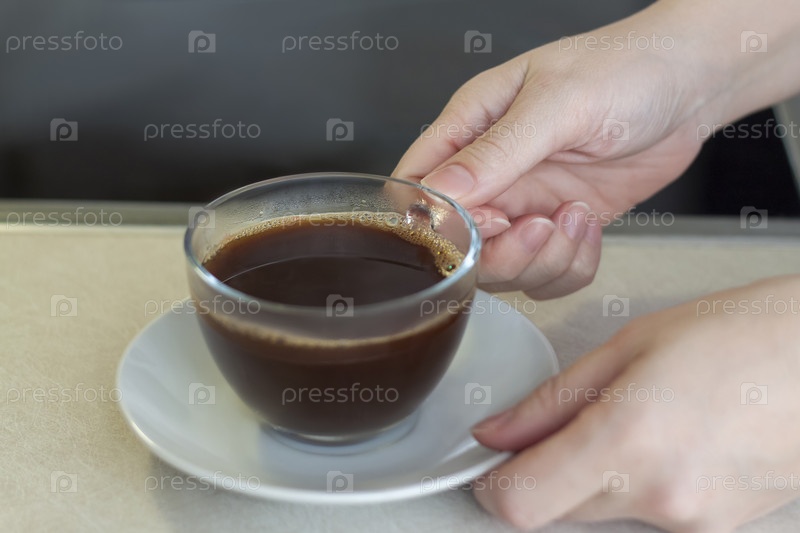 Женские руки держат чашку кофе над столом. Завтрак с кофе. Сварить кофе в турке