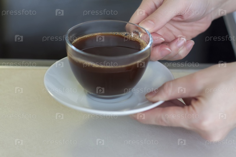 Женские руки держат чашку кофе над столом. Завтрак с кофе. Сварить кофе в турке