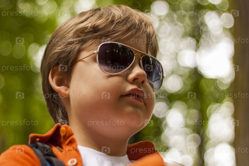 Портрет стильно одетого мальчика в солнечных очках. Концепция очков. Молодой человек в парке в солнечную погоду
