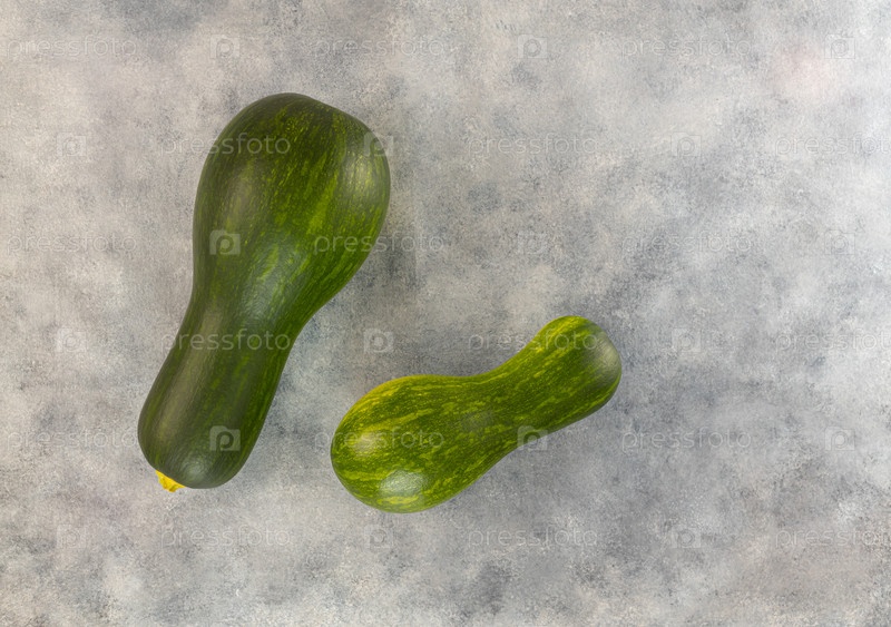 Сырые кабачки на светло-сером столе. Вид сверху, пространство для копирования