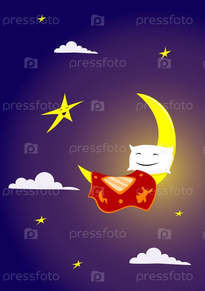 Спокойной ночи - фон с ночным небом, облаками, звездами и месяцем