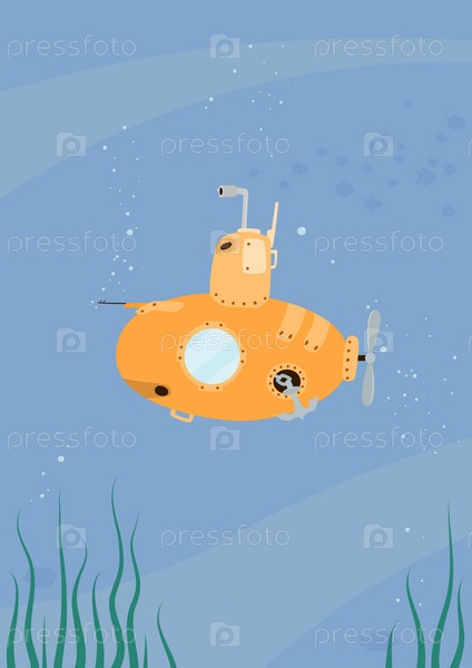 Желтая подводная лодка под водой