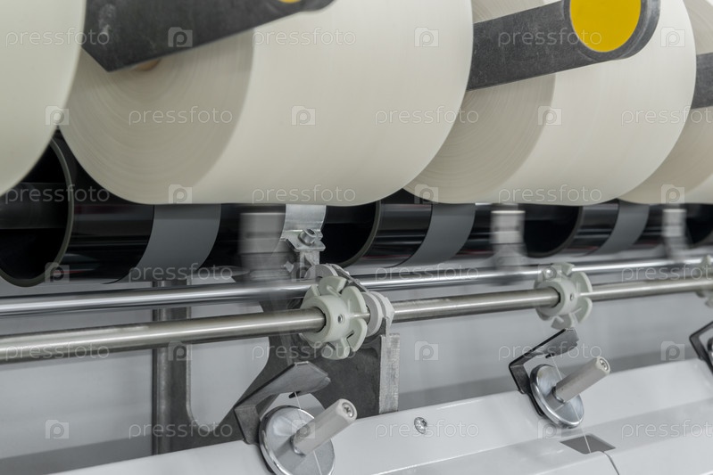 Катушки с нитками на текстильной фабрике