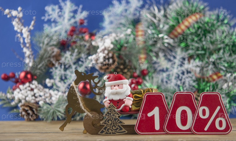 Большие распродажи 10%, десять процентов с рождественским венком на фоне старой доски сарая, вид спереди, пространство для копирования. Рождественская большая распродажа