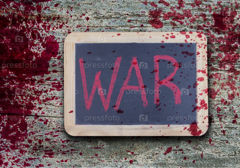 Кровавое слово Война с брызгами, каплями, пятнами на деревянном фоне