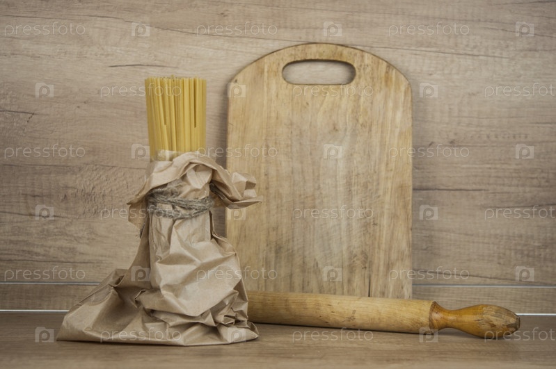Итальянские спагетти на деревянных фоне