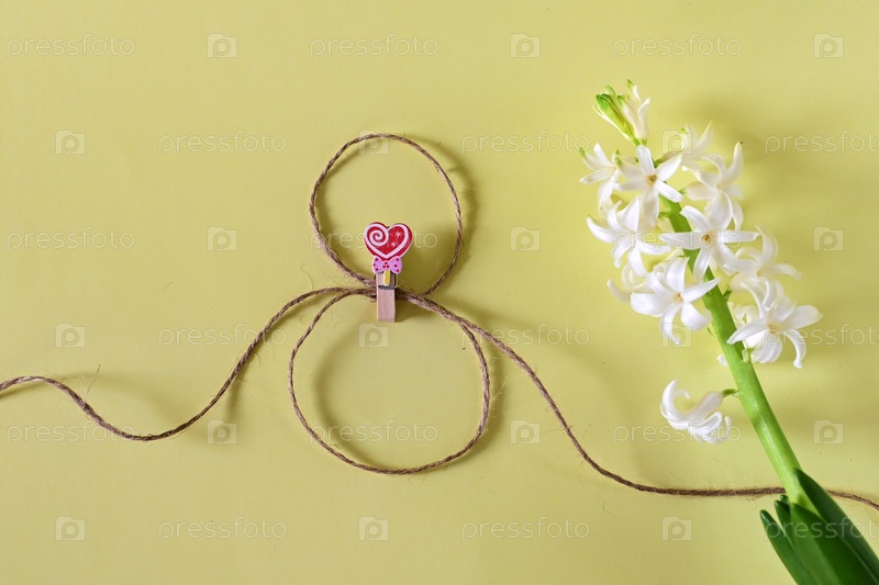 Красивые цветы гиацинт на желтом фоне женский день