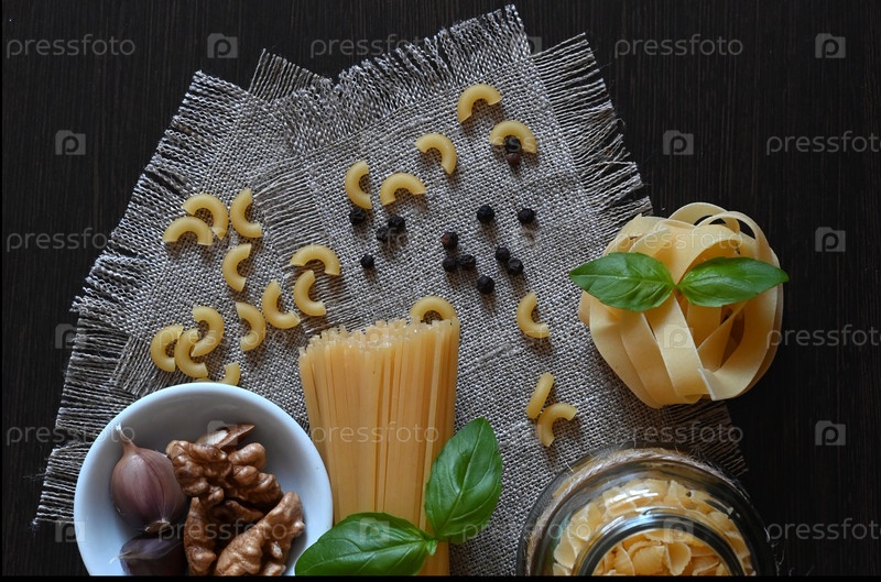 Различные макароны. Концепция приготовления пищи. Вид сверху
